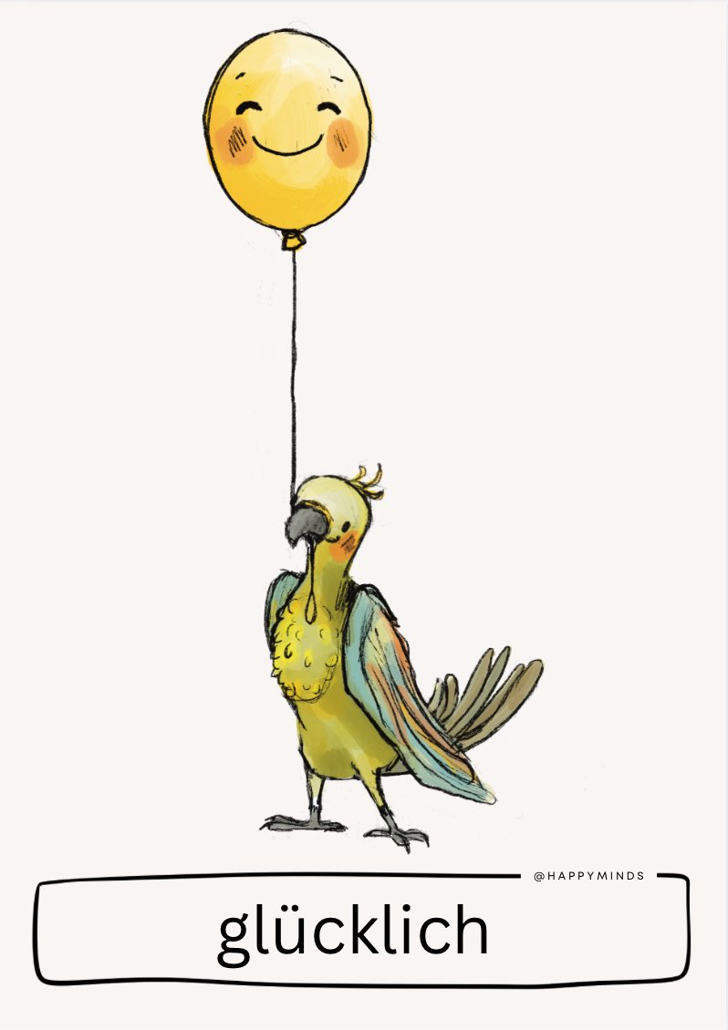 Sie helfen Kindern, ihre eigenen Emotionen besser wahrzunehmen, auszudrücken und zu verstehen. Jede Karte zeigt Papagei Milo in einer bestimmten Gefühlslage – vom fröhlichen Lachen bis hin zur wütenden oder traurigen Stimmung.