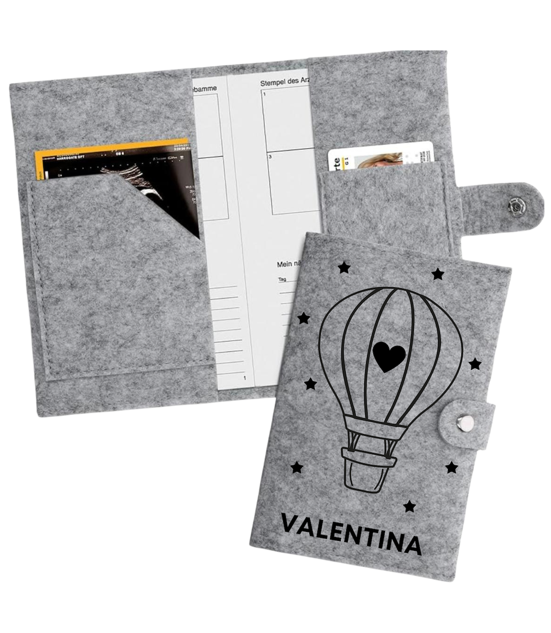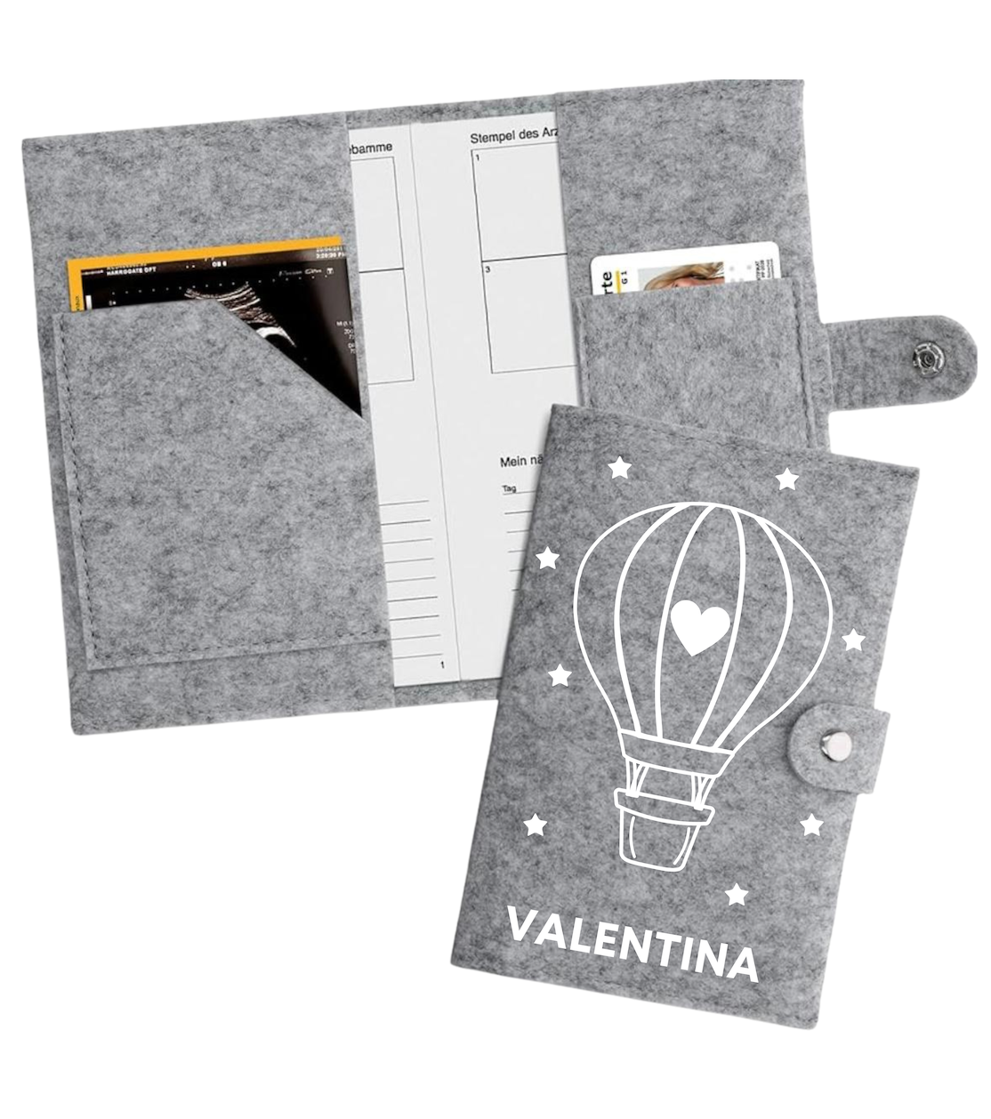Mit dieser personalisierbaren Filz-Hülle für den Mutter-Kind-Pass hast du alle wichtigen Dokumente für Arzt- oder Hebammenbesuche sicher und griffbereit an einem Ort. Auch nach der Geburt bleibt sie eine schöne Erinnerung.