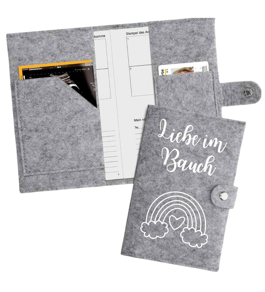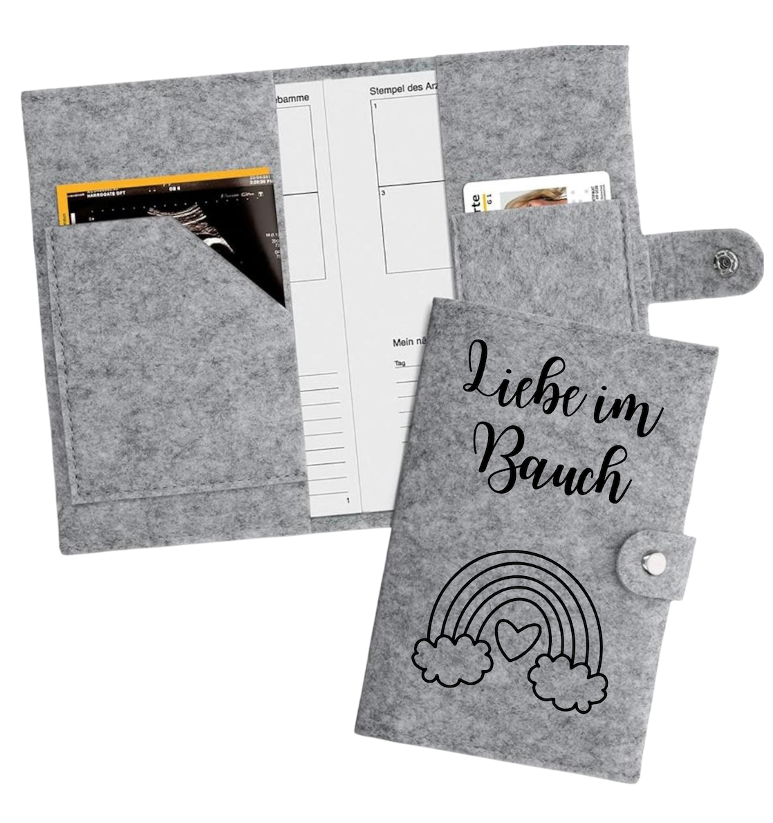 Mutter-Kind-Pass Hülle - Liebe im Bauch + Regenbogen